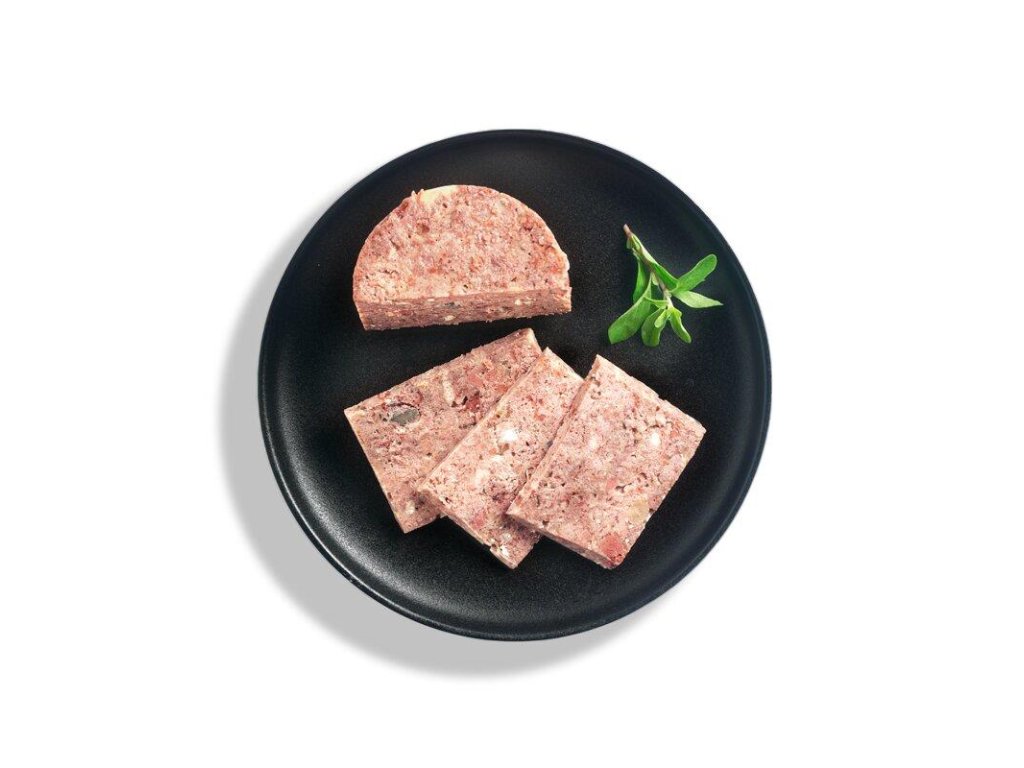 Hovězí svalovina, srdce, játra, plíce, ledviny, hrtan (73 %), hovězí vývar (27 %)
