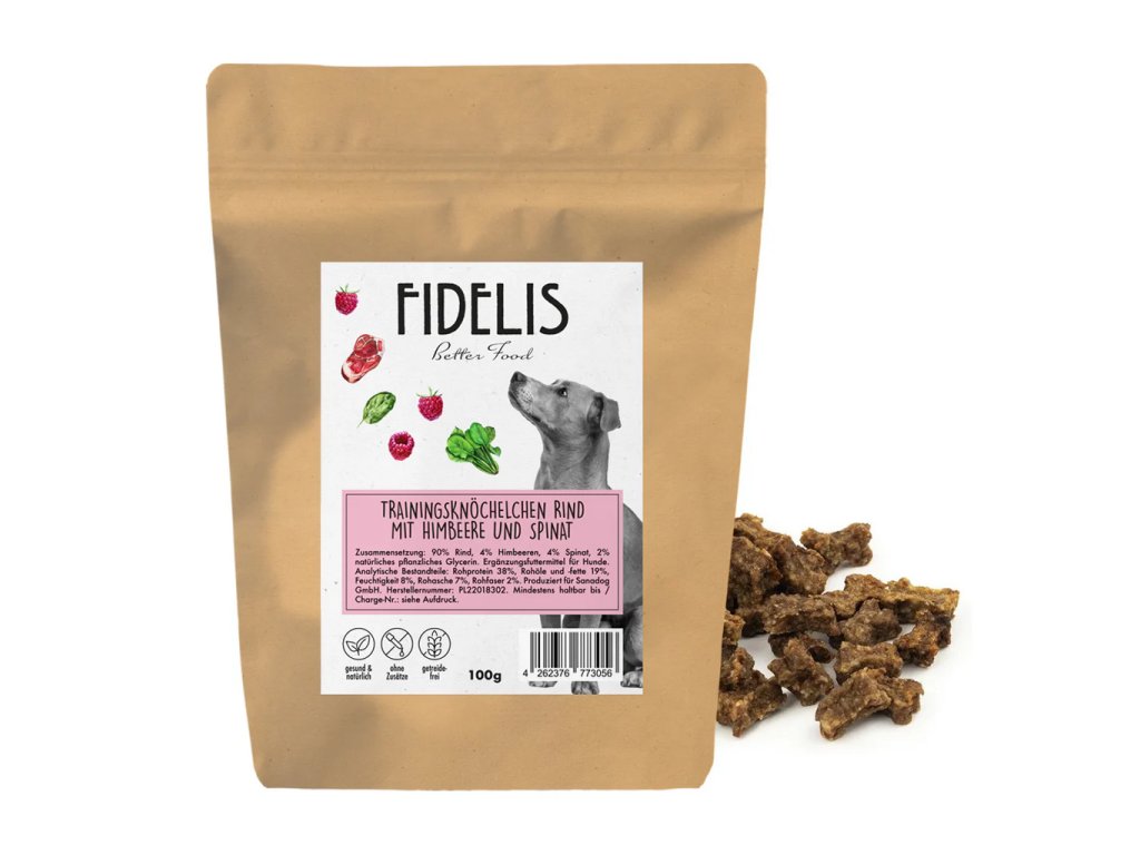 Fidelis Tréninkové kostičky hovězí s malinami a špenátem 100 g