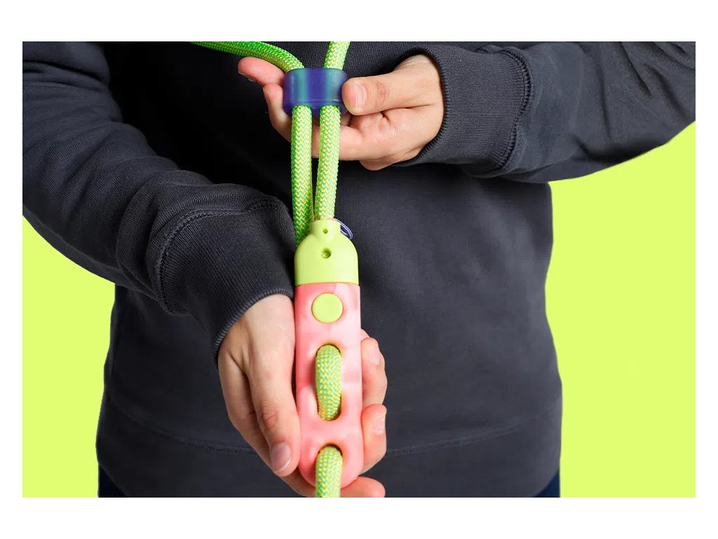 - Pokud chcete vodítko používat jako regulérní vodítko, stačí s E.lock zámkem zmenšit smyčku na velikost rukojeti vodítka.
