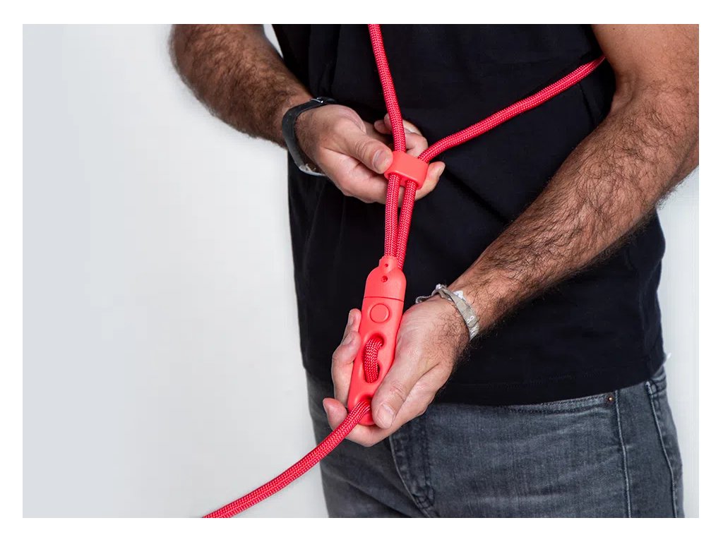 - Pokud chcete vodítko používat jako regulérní vodítko, stačí s E.lock zámkem zmenšit smyčku na velikost rukojeti vodítka.