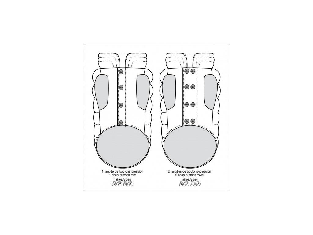 Dvojitá řada knoflíků od velikosti 35 do 41