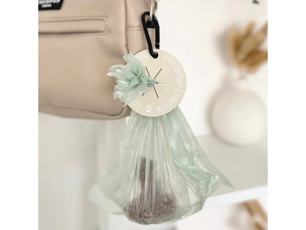 - Jednoduše protáhněte svázaný sáček na hovínka otvorem kapsy CocoPoop a připněte si ho na vodítko nebo tašku.
