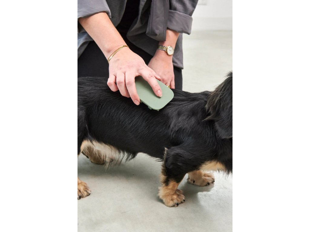 - Pružné silikonové štětiny se optimálně přizpůsobí každému tvaru těla a intenzivním tlakem masírují pojivovou tkáň, to podporuje krevní oběh pro silnou lesklou srst.