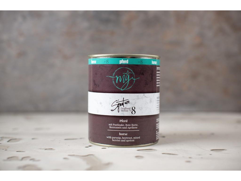 Konzerva pro psy my Signature menu - Kůň s pastiňákem, červenou řepou, bobulemi a meruňkou 410 g