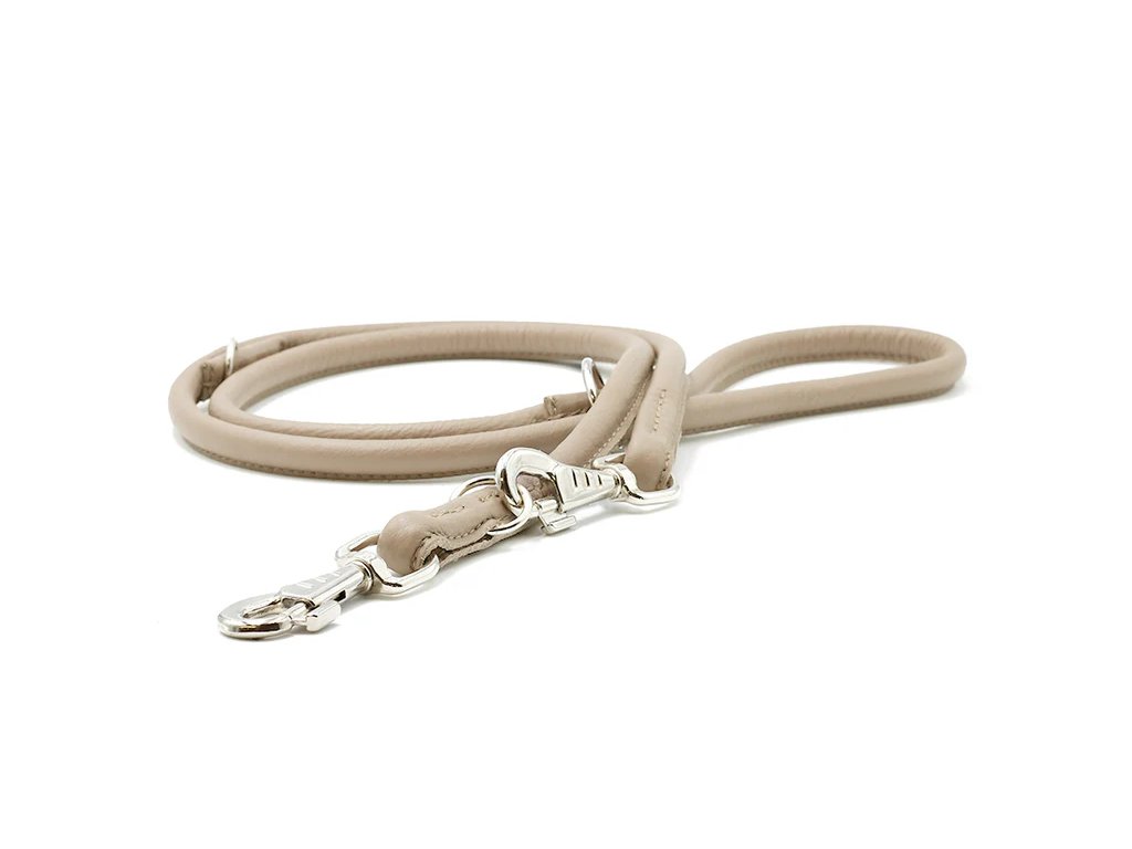 Kožené vodítko kulaté světle béžové/stříbrné kování