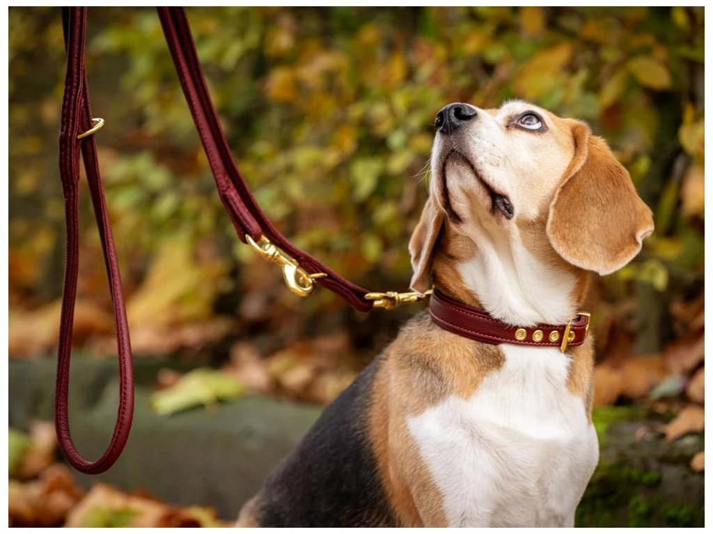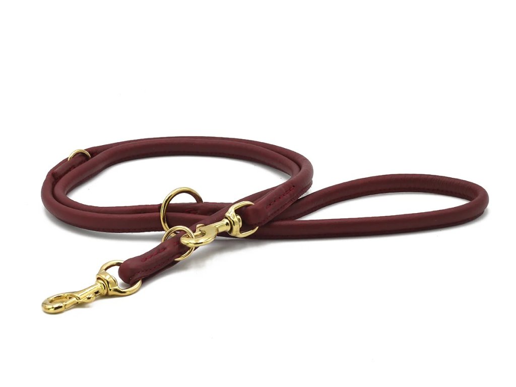 Kožené vodítko pro psy kulaté bordó/zlaté kování