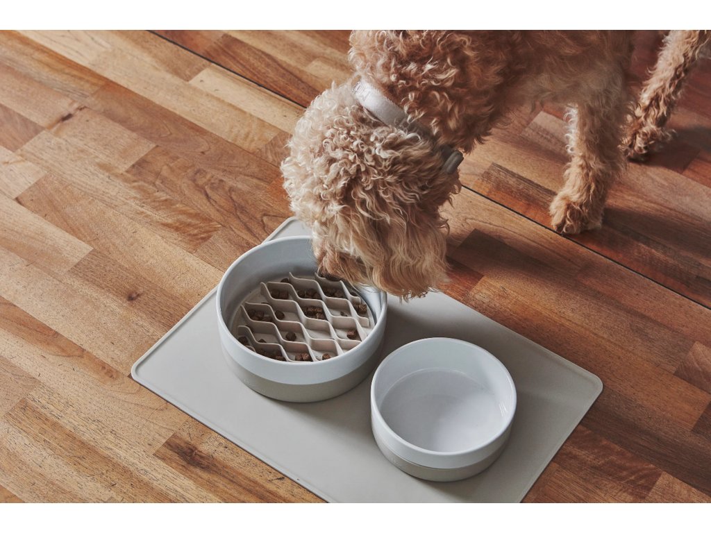 - Odnímatelný, protiskluzový silikonový povlak zajišťuje, že miska během jídla zůstane na místě, chrání podlahu a dodává nádech barvy jednoduchému designu.