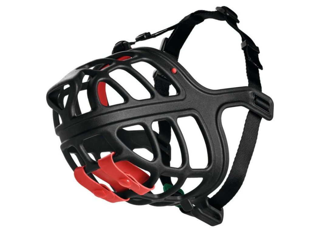 Odnímatelná ochranná část na tlamě pak brání konzumaci nežádoucích nalezených potravin, zbytků nebo nástrah při procházce.