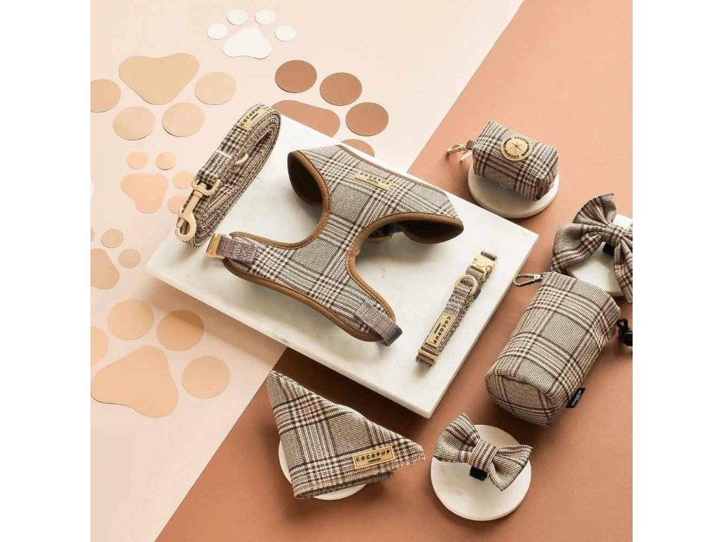 Vodítko Pup Plaid s tvídovým a tartanovým designem v čokoládově hnědé barvě. Stylový doplněk pro každou procházku, ať už ve městě nebo na venkově. Zaručeně upoutá pozornost!