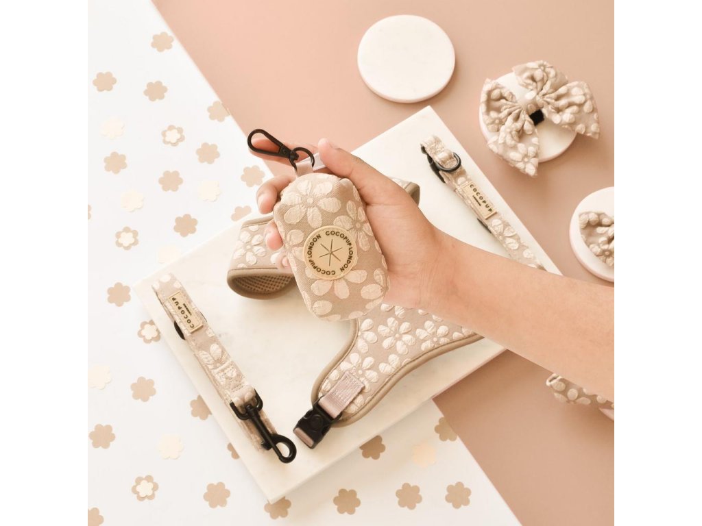 design s vyšívanými květinami a měkký samet dělají z každodenního venčení elegantní záležitostMini peněženka i zásobník v jednom