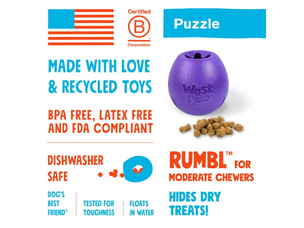 Rumbl si váš pes zamiluje! Bude nejen zdrojem oblíbených pamlsků, ale i nekonečné zábavy. Je lehký, ohebný a skvěle se kutálí, takže pejska zabaví i poté, co všechny dobroty zmizí.